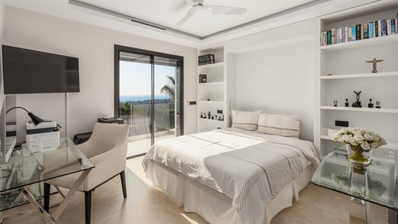 Willkommen in der Villa La Vista, einer komplett renovierten Familienvilla im begehrten Stadtteil El Rosario. 2024 aufwendig renoviert, vereint dieses Anwesen modernes Design mit skandinavischem Flair und beeindruckt mit spektakulären Ausblicken auf das Mittelmeer, Golfplätze und die Berge Marbellas.