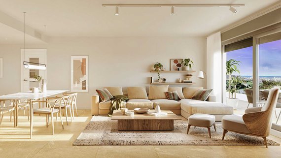 Die Auswahl reicht von 2 bis 4 Schlafzimmer-Wohnungen, die sich ideal als Dauer- oder Feriendomizil eignen. Offene Wohnbereiche gehen nahtlos in moderne, amerikanische (komplett ausgestattete) Küchen über, und alle Hauptschlafzimmer haben ein eigenes Badezimmer. Apartments mit 2 und 3 Zimmern bieten von allen Räumen aus direkten Zugang zu großzügigen Terrassen, während die luxuriösen Penthäuser mit Dachsolarium, sich ideal für Sonnenbäder und gesellige Abende eignen. Zur Ausstattung gehören zudem motorisierte Jalousien, Einbauschränke in allen Schlafzimmern, große Porzellanfliesen und hochwertige Bäder mit beheizten Handtuchhaltern. Die nachhaltige Bauweise nutzt innovative Aerothermik-Systeme für Warmwasser und Klimatisierung zur Kühlung/Heizung.